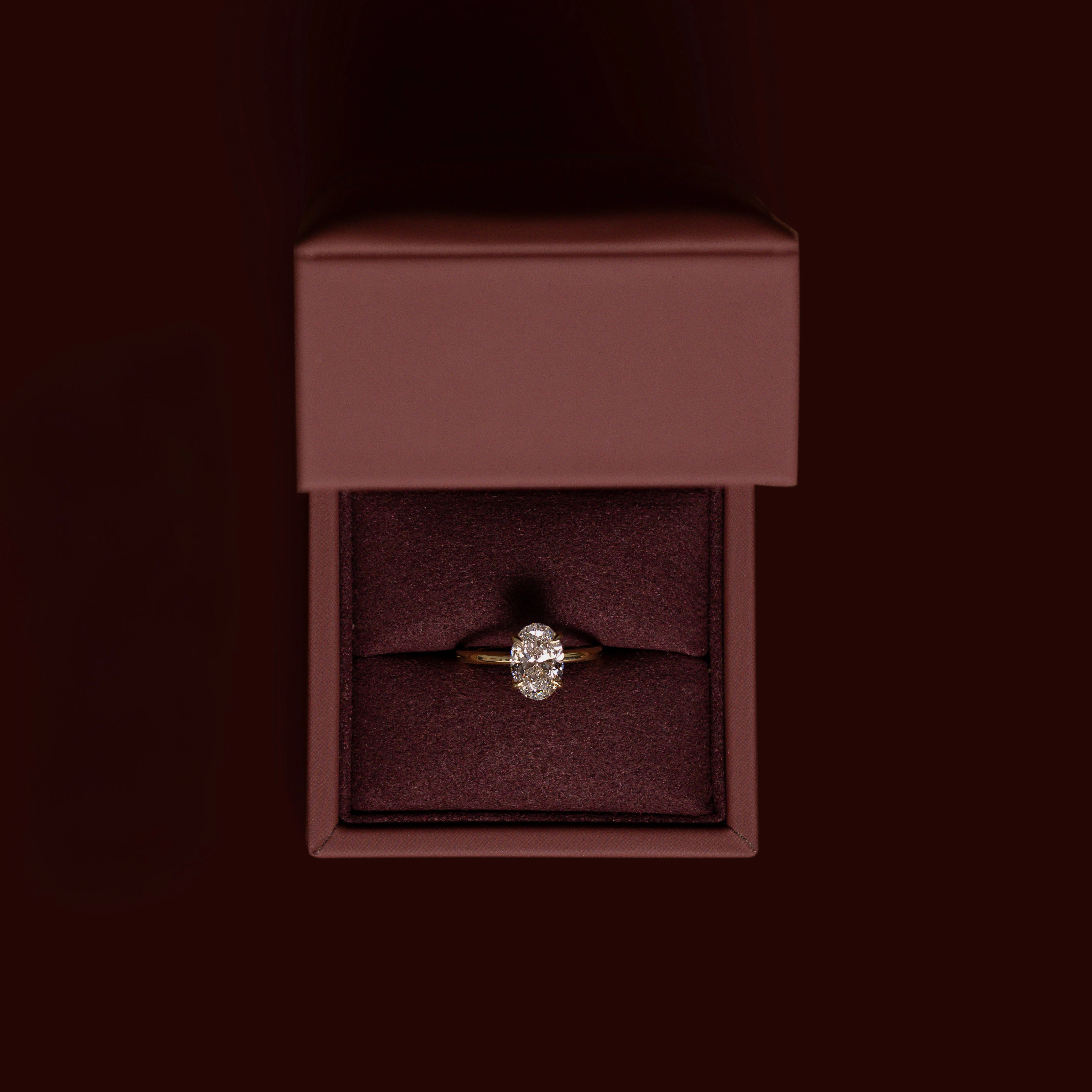 The Luise Ring® is a modern classic featuring an oval cut lab-grown gemstone meticulously crafted in a basket setting, blending style and femininity with a millennial twist.