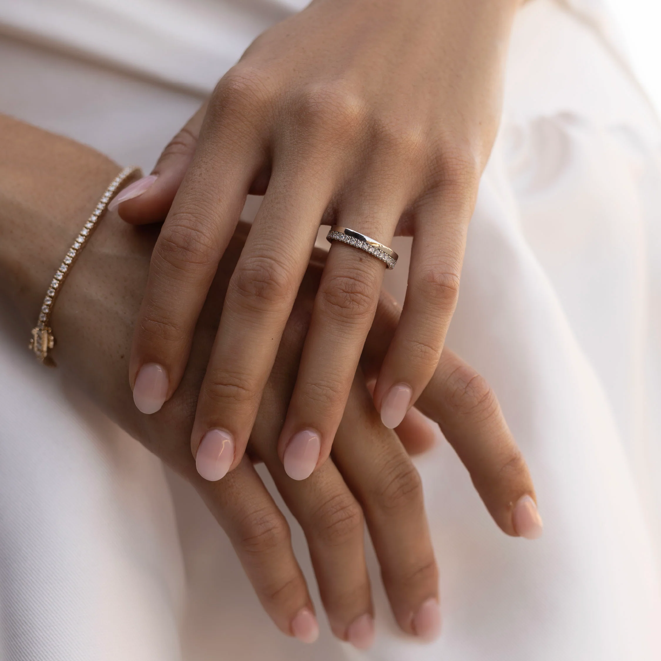 Crafted with a bold 3.7mm band width, The Nara Ring features pavé set lab-grown gemstones lining the edge of a statement band. Crafted in Australia, crafted for your forever.